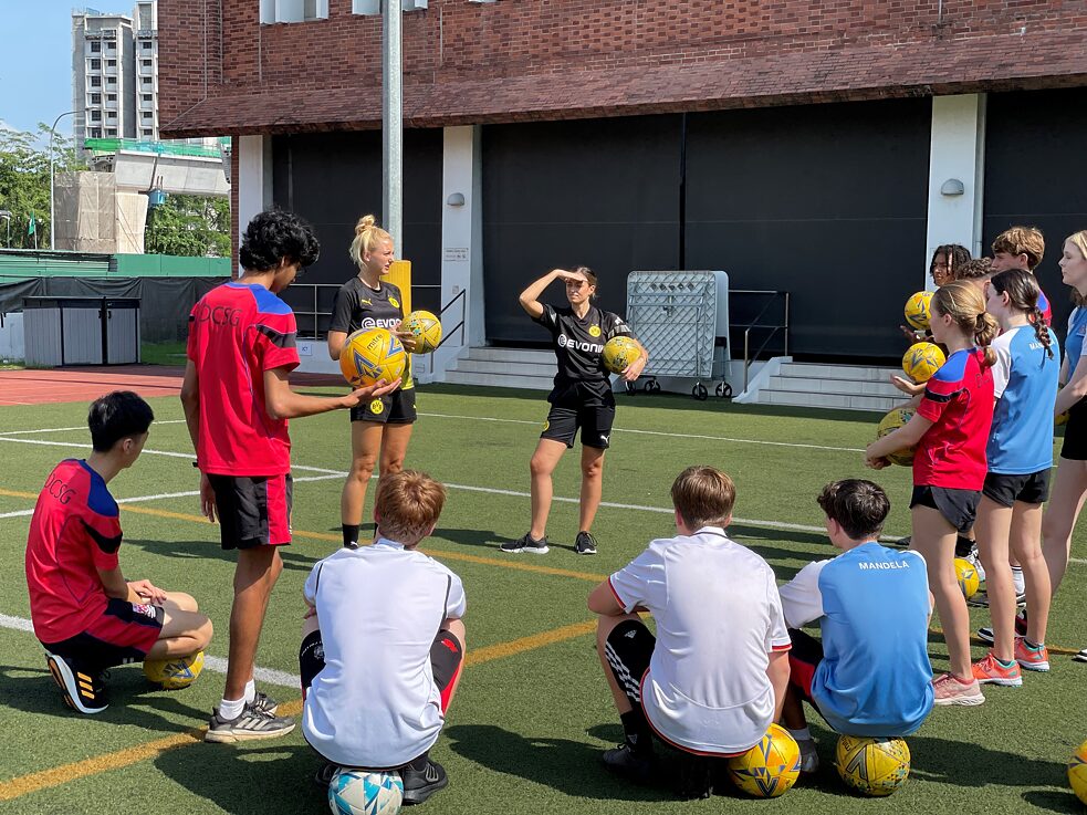 Im Mai 2023 erlebten Schülerinnen und Schüler vom Dulwich College Singapore einen Tag lang deutsches Fußballtraining auf Weltklasseniveau, ohne das Schulgelände verlassen zu müssen.