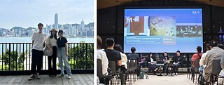 2023年夏,香港,和“灰质”成员林鹭琪、吴晓璠相聚在M+(左);2024年初于M+举行公共讲座,汇报研究成果(右)。 | © Ara Yun Qiu
