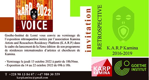 Das Goethe-Institut Lomé lädt Sie zur Eröffnung der retrospektiven Ausstellung ein, die von der Verein Kamina Artists and Reseachers Residency Platform (K.A.R.P.) im Rahmen des Auftakts der 5. Ausgabe seines internationalen Residenzprogramms für Künstler und Forscher aus Kamina initiiert wurde.