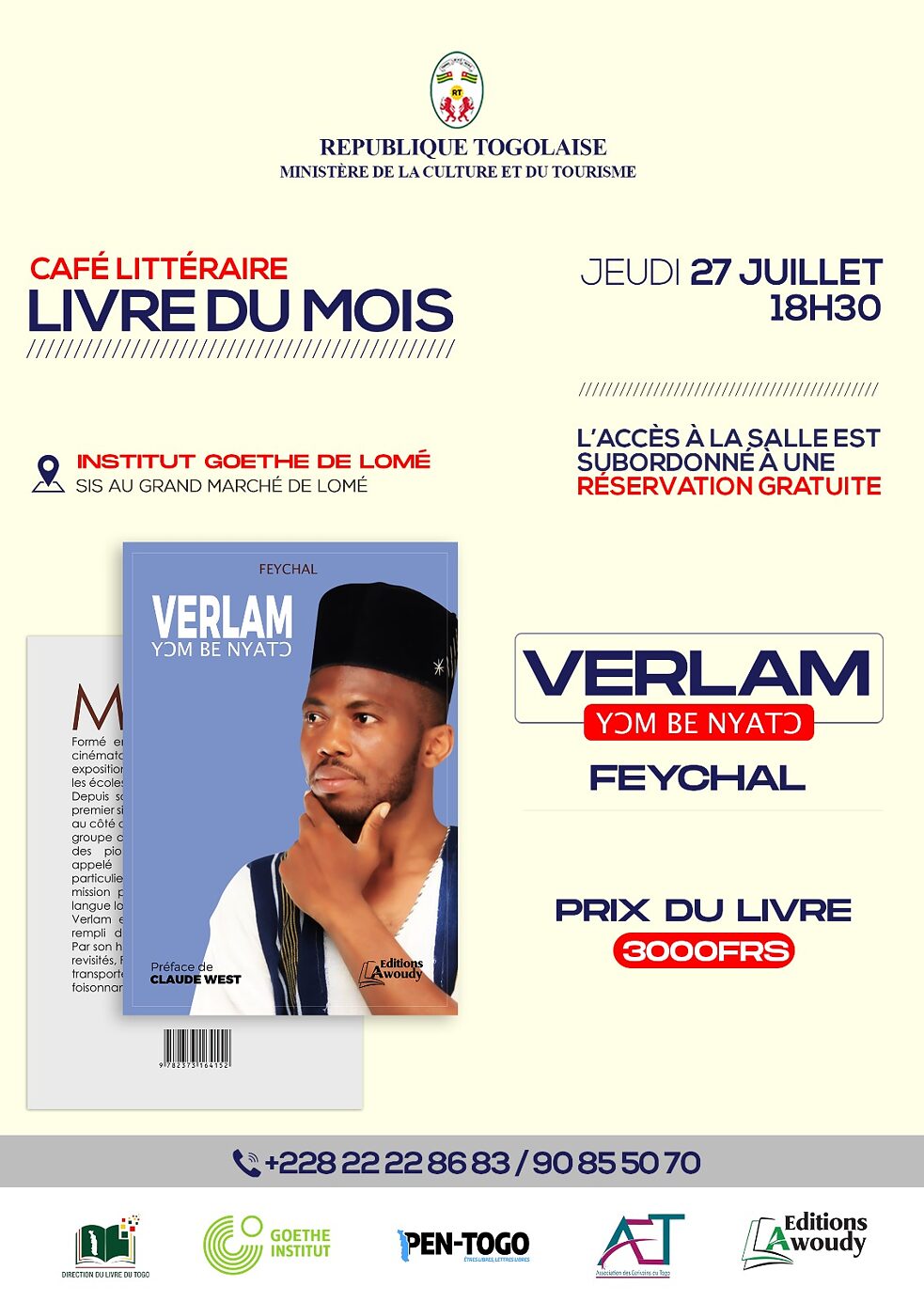 Das Goethe-Institut Lomé freut sich, euch zum literarischen Café über das Buch des Monates Juli 2023 "VERLAM" von TRAORE Feychal einzuladen.Die literarischen Cafés sind monatliche Veranstaltungen, die gemeinsam vom Goethe-Institut und dem togoischen Ministerium für Tourismus und Kultur organisiert werden.