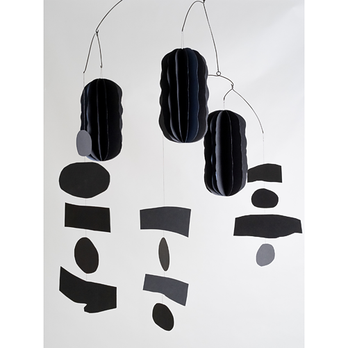 The American artist Robert Motherwell produced over 150 paintings in his series Elegy to the Spanish Republic. Although the pieces differed, each featured black, abstract and geometric shapes. These shapes gave a heaviness to the series. My mobile was created with the aim of conveying the simplicity of this heaviness.