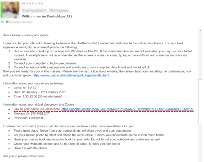 1) Open the e-mail sent from your teacher. (See an example below) Then click on the link to directly enter your online classroom.