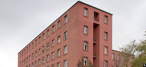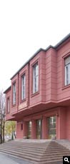 Orta blok gerek içte gerekse de dışta, diğer bloktakinden farklı malzeme kullanımı ile dikkat çekmektedir. Giriş holünün zemin ve duvarları, anıtsal merdivenler ve birinci karı üstten ışık alan holünün sütunları dahil tüm döşeme ve duvarları beyaz mermerle kaplanmıştır. Dışta, taraklanmış taş kaplama üzerinde taş sıraları izlenimi veren yatay derzler açılmıştır.