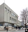 Caddeden birkaç basamak merdivenle ulaşılabilen, geriye kalan yapı gövdesine göre bir parça giriş kanadının "Soussol" bölümünde kalan ana giriş, büro kanadının hiza çizgisine doğru geriye çekilmiştir. Bu girişin hemen arkasında, yan taraftan büro kanadına ait hacim içerisine entegre edilmiş ana merdivene ulaşılabilen bir koridor bulunmaktadır. Giriş kanadının her iki üst katının hacmi, ana giriş üzerinde çıkıntı oluşturmakta ve dar, tıpkı "Pilotis" gibi etki eden, enlemesine dikdörtgen kolonlar tarafından taşınmaktadır. Giriş kanadı, zemin katta kapı görevlilerinin kulübesiyle birlikte fuayeyi barındırmaktadır; her iki üst katta bir taraftan kütüphane, toplantı odaları ve diğer ortak alanlar, diğer taraftan yönetim ofisleri ve iç kısımda bulunan merkezi bir salondan ve yan taraftaki ofislerden ulaşılan dar bir balkon bulunmaktadır.