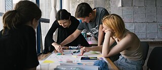 Nach mehreren Monaten der Online-Zusammenarbeit hatten die Teilnehmenden des Online-Labors, das Kurator*innenteam, das Goethe-Institut Ukraine, Vitsche und Feminist Workshop die Möglichkeit, sich persönlich in Berlin für ein Networking und die Ausstellung zu treffen.