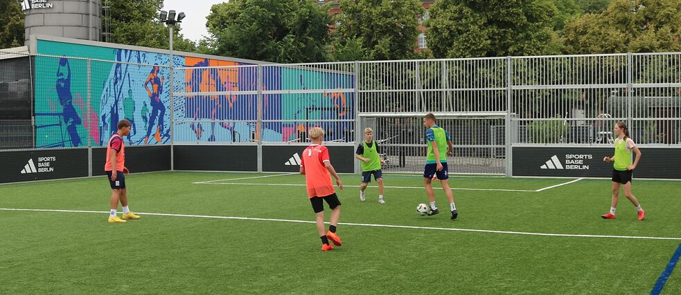 Die Jugendlichen spielen Fußball auf dem Sportsbasis Berlin
