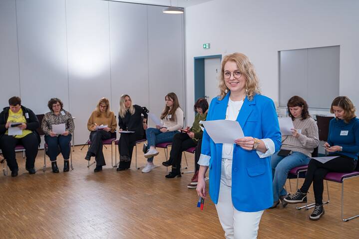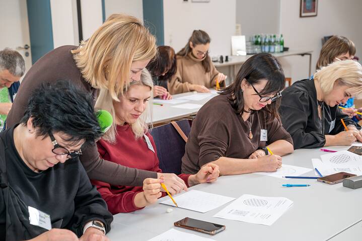 Workshops zu Konfliktmanagement, Meditation und Achtsamkeit boten praxisorientierte Methoden für die Arbeit in Schulen und der Bildungsadministration. Unter der Leitung der Psychologin Olha Tovpeko erhielten die Teilnehmenden wertvolle Strategien, um mit den psychischen Belastungen ihres Alltags umzugehen, der in der Ukraine durch Luftangriffe und andere Krisen geprägt ist. Besonders hervorzuheben waren die Einheiten zu Konfliktmanagement und Meditation, die den Teilnehmenden halfen, stressige Situationen besser zu bewältigen und inneren Frieden zu finden. Ergänzend dazu boten Yoga- und Klangmeditationseinheiten eine entspannende Auszeit und förderten die Regeneration. Die ruhige Atmosphäre des Tagungsortes ermöglichte es den Anwesenden, neue Energie zu tanken und frische Impulse für ihre berufliche Arbeit zu gewinnen.