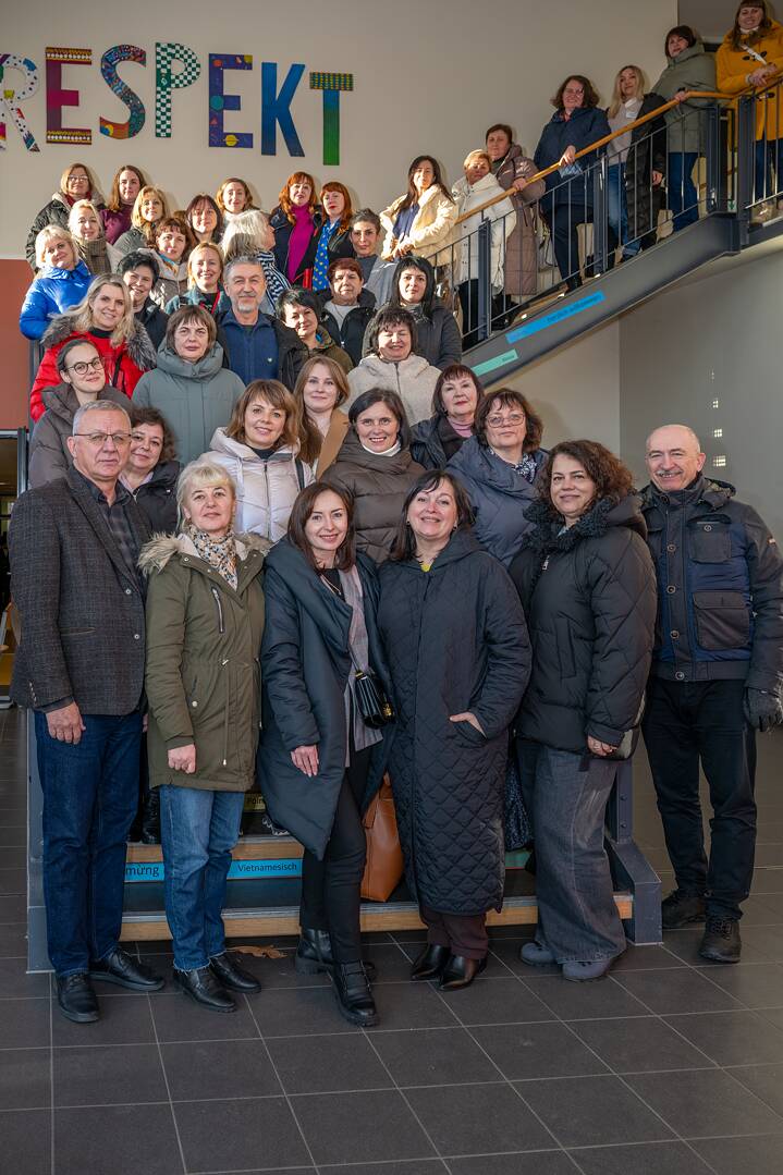 Vom 25. bis 30. November 2024 trafen sich 34 Vertreter*innen aus 17 ukrainischen PASCH-Schulen im Blockhaus Ahlhorn, um unter dem Motto „Lernen, Austauschen und Vernetzen für eine gemeinsame Zukunft“ über die Herausforderungen der aktuellen Bildungslandschaft zu diskutieren und neue Kontakte zu knüpfen. Geschäftsführer Niels-Christian Heins eröffnete die Veranstaltung mit einem Blick auf die enge, langjährige Verbindung zwischen dem Blockhaus und der Ukraine, die sich besonders im Jahr 2022 zeigte, als das Blockhaus als Zufluchtsort für Geflüchtete diente. Dies bildete den emotionalen Aufmacher für den Start in eine volle Woche mit viel Programm, intensiven Eindrücken, Gesprächen und tiefgreifenden Emotionen.