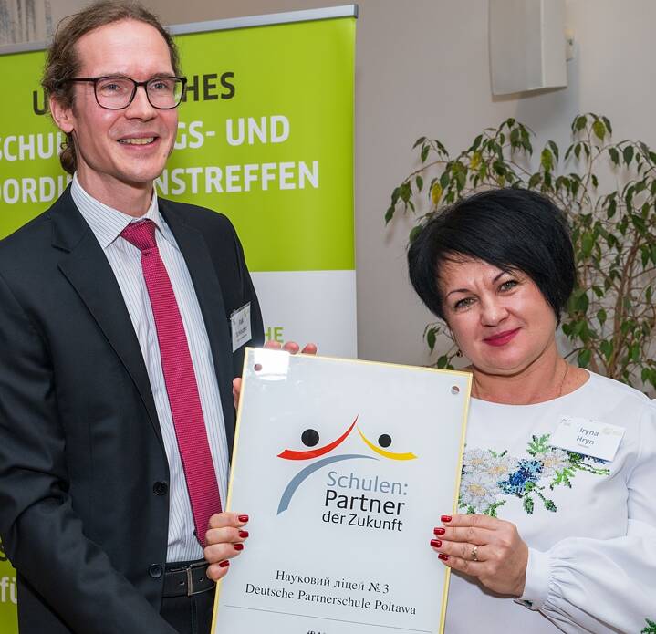 Gemainsames Foto von ukrainischen Schulleiter und Deutschlehrer
