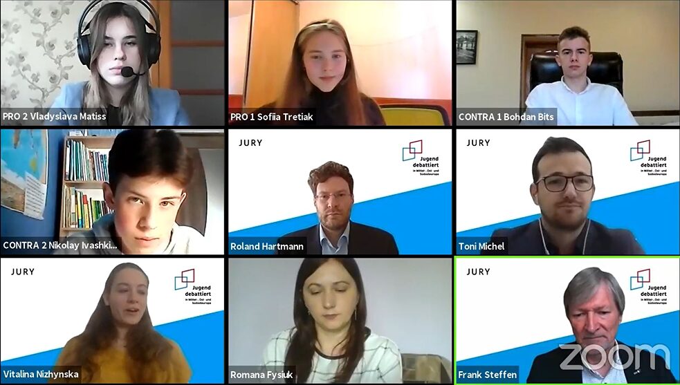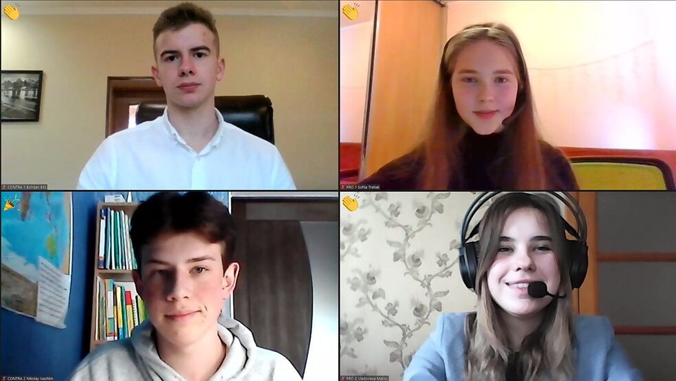 На фіналі конкурсу з риторики «Молодіжні дебати в Центральній, Східній та Південно-Східній Європі» українські школярі з різних куточків країни зустрілися, щоб обговорити надзвичайно актуальну тему німецькою мовою. Під час онлайн-дебатів учні розглянули питання, яке тривалий час хвилює уряди багатьох країн світу: «Чи повинна вакцинація від коронавірусу стати якомога швидше обов'язковою»?