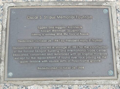 The Oscar S. Straus Memorial Fountain, located in Federal Triangle on 14th Street between Constitution and Pennsylvania Avenues, NW, 2005. -