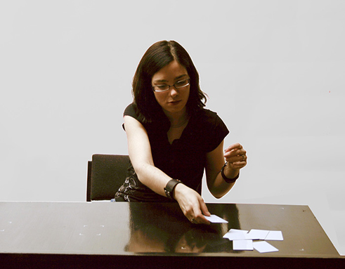 While early Game Art was often deployed only on the computer screen, there has recently been the tendency to develop it as a playful interface between the computer system and human users. Artists such as Jess Kilby, //////////fur//// and Tobias Leingruber use the interface between viewer and machine as the anchor point of a critical artistic statement. The article of furniture on which the American artist Jess Kilby can foretell the future looks like the black table of a card reader, but it conceals a computerized system for reading non-visible information, burned onto so-called RFID chips. The Tarot cards, which are outwardly identical to normal ones, contain electromagnetic information that the reading device can decrypt, just as a RFID reader does in a clothing shop. But with her constructed interface the artist questions a relationship that does not occur to us in shopping: how does technology change our interaction with machines? Her game of technologically advanced card reading indicates the role and magical power of enchanted machines. Kilby’s art game applies artistic strategies to reflect on playful technology.