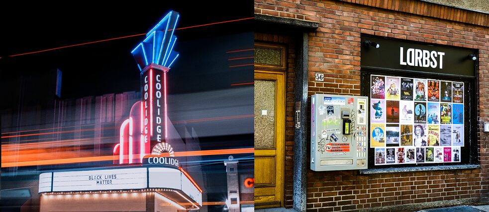 Mark Anastasio, Programmer at the Coolidge Corner Theatre, and Wiebke and Johannes Thomsen, owners of Kino Lodderbast in Hannover, Germany, in conversation about cinemas during the pandemic. May 5th, 2021