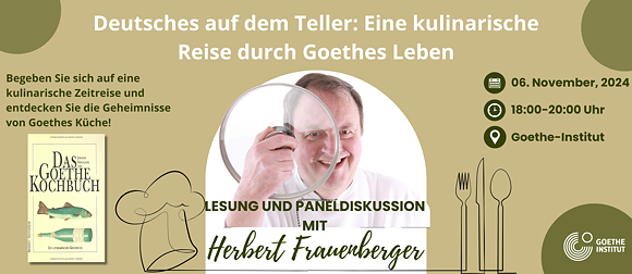 Vergessen Sie nicht, den 6. November in Ihrem Kalender vorzumerken, denn an diesem Tag werden Sie einen berühmten deutschen Koch, Herbert Frauenberger, in der Goethe-Bibliothek kennenlernen, der über sein Buch "Das Goethe Kochbuch" und vieles mehr erzählen wird.