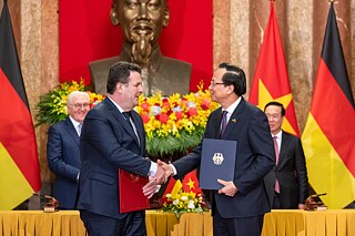 Tổng thống Frank-Walter Steinmeier đã có chuyến thăm cấp nhà nước tới Việt Nam. Ông đã đến thăm Hà Nội, Thành phố Hồ Chí Minh và trường Đại học Đức-Việt tại tỉnh Bình Dương. Cùng tham gia tháp tùng Tổng thống có Bộ trưởng Lao động Hubertus Heil, ông đã cùng người đồng cấp của mình, Bộ trưởng Đào Ngọc Dung, ký kết Biên bản ghi nhớ về hợp tác lao động bên lề chuyến thăm.