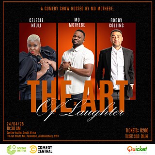 Stand up comedy show|A night of stand up comedy featuring the best South African stand up comedians. Hosted by Mo Mothebe at the Goethe-Institut. Featuring the comedic stylings of Netflix and Amazon Star Robby Collins and the incomparable Queen of African Stand up Comedy Celeste Ntuli.
