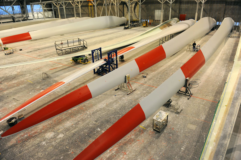 Bei modernen Windkraftanlagen sorgen optimierten Flügelprofile für einen hohen Wirkungsgrad