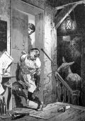 „Was muss ich hören!“, rief der Schneider, lief hinauf und sprach zu dem Jungen: „Ei, du Lügner, sagst, die Ziege wäre satt, und hast sie hungern lassen?“, und in seinem Zorn nahm er den Stock von der Wand und jagte ihn mit Schlägen hinaus. Und auch dem zweiten und dritten Sohn geschah es wie dem ersten. Die boshafte Ziege log, und da der Schneider ihr glaubte, schlug er mit dem Stock die Jungen zur Haustür hinaus.