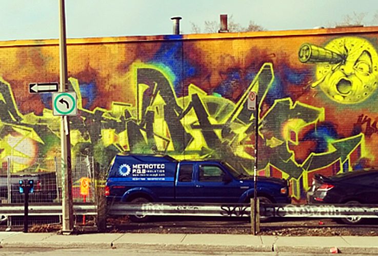 est l'un des artistes de graffiti les plus connus de Montréal. Il a commencé en tant qu'écrivain, une activité qu'il exerce encore aujourd'hui. Au fil du temps, il s'est tourné vers les murs, et est maintenant considéré comme l'un des meilleurs graffeurs de la ville. Ses graffitis, pour la plupart légaux, sont rarement la cible des tagueurs, signe d'ultime du respect de ses pairs. Si vous avez été à Montréal, vous avez certainement vu certaines de ses œuvres, parmi lesquelles les