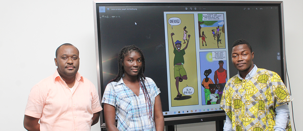 "KanAd" aka Folly-Notsron Kanyi Adrien Magloire is a Togolese comic artist, illustrator and graphic designer. He participated in several workshops to further his education in children's book illustration and comics. As a result, he published his first two children's books with Editions Harmattan in France in 2003. However, he is most productive in the world of comics: to date, he is the Togolese comic artist with the largest number of published comics. He is a regular at the major international book and comics fairs and festivals and has won several prizes and scholarships, such as the prize for best comic at the Festival International de la Bande Dessinée de Ouagadougou (International Comics Festival). In 2014, he was awarded an artist residency in the French city of La Rochelle, sponsored by the Institut Français. In the same year, he received a creative scholarship from the Centre National du Livre in Paris. In September 2019, he flew to Sweden, where he spent four weeks drawing comics with Nordic artists during an artist residency in Malmö sponsored by the Swedish Comics Association. In April 2021, it was the turn of the Institut Français' Villa Ndar in Saint-Louis, Senegal, where he did a six-week artist residency. In May 2022, he settled in Arc-et-Senans in the south of France for a two-week residency during which he created a children's book. He is very versatile and an all-rounder, comfortable in any style of comic, but very specialised in comics for young readers and all ages.