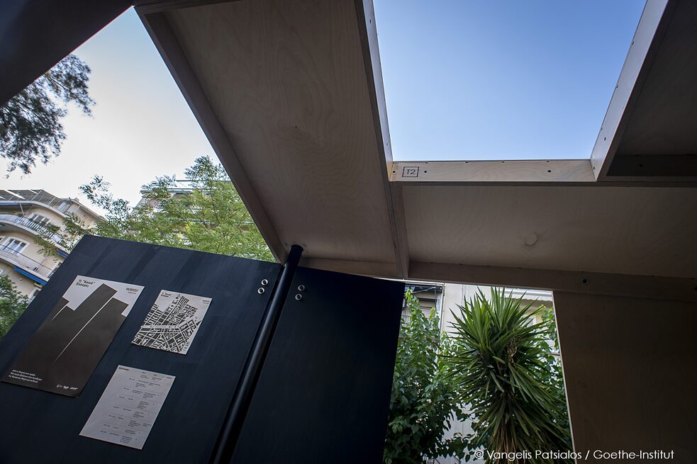 Auf dem Platz mussten wir ein wenig suchen, bis wir eine weitere Installation des Aktionstages entdeckten, noch eine Kabine, diesmal eine Telefonzelle: die Question Answering Machine. Sie ist einem öffentlichen Fernsprecher nachempfunden, über den man von Erfahrungen und Geschichten hören kann, die mit dem Viertel und seinen Bewohnern verknüpft sind. Diese Installation trägt die Handschrift des amerikanischen Künstlers Jonah Senzel und der Architektin und Multimediakünstlerin Katerina Magarini und war den Besuchern schon seit dem frühen Morgen des Aktionstages „Was sind unsere Commons“ zugänglich gewesen. Zu diesem Aktionstag gehörte auch der Workshop "Mein Viertel in der Hitzewelle", bei dem das Unbehagen im öffentlichen urbanen Raum kollektiv kartographiert wurde – ein Workshop organisiert von Commonspace und Participatory LAB in Zusammenarbeit mit CLOUDS. Weiterhin gehörte zu dem Aktionstag das von der gemeinnützigen Organisation Interalia präsentierte Rollenspiel, das Position und Rolle der direkt von Umweltproblemen betroffenen Bürgern reflektiert, Probleme, die aus der exzessiven Ausbeutung der Natur resultieren.
