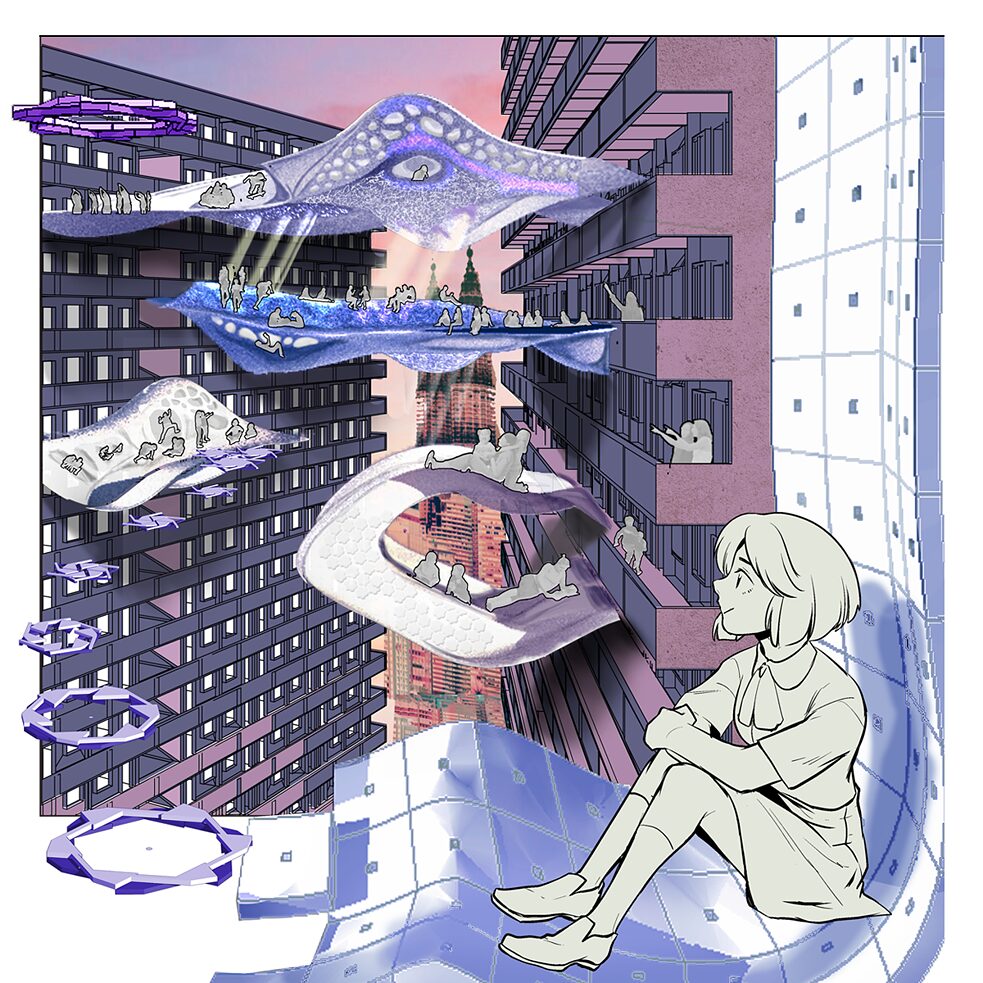 (KO)lective-(MO)bile-(RE)sponsive-(BI)omimicryis a public-funded, common good that rotates around in the city, providing a fair chance to everyone to utilize it, where it could be a system that uses air space and deployed to different places on a rotation basis to avoid gentrification.