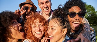 Mehrere Personen stecken die Köpfe zusammen und haben Spaß. © Getty Images