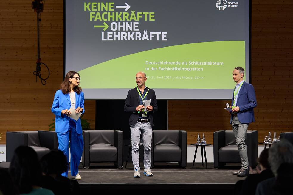 This sort of nitty-gritty info is essential because “Germany was a culture shock for me,” recounts Houssame Mabrouk. A trained chef and restaurateur from Morocco, Mabrouk found out about job opportunities in Germany through a GIZ (German Agency for International Cooperation) project for trained professionals. During the Covid pandemic, he learnt German through online courses. He now manages a family-run restaurant in Oberstaufen, a Bavarian small town (population: three thousand). The symposium showed that immigrants like Mabrouk, who have much to gain from immigration, also have a great deal to contribute to German society. The German language is the key to communication and mutual understanding in Germany, and it needs to be taught by competent, committed teachers.