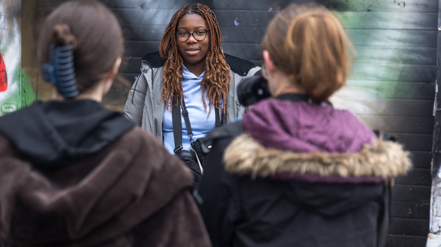 Die Teilnehmenden integrieren die städtische Umgebung in ihre Workshoparbeit.