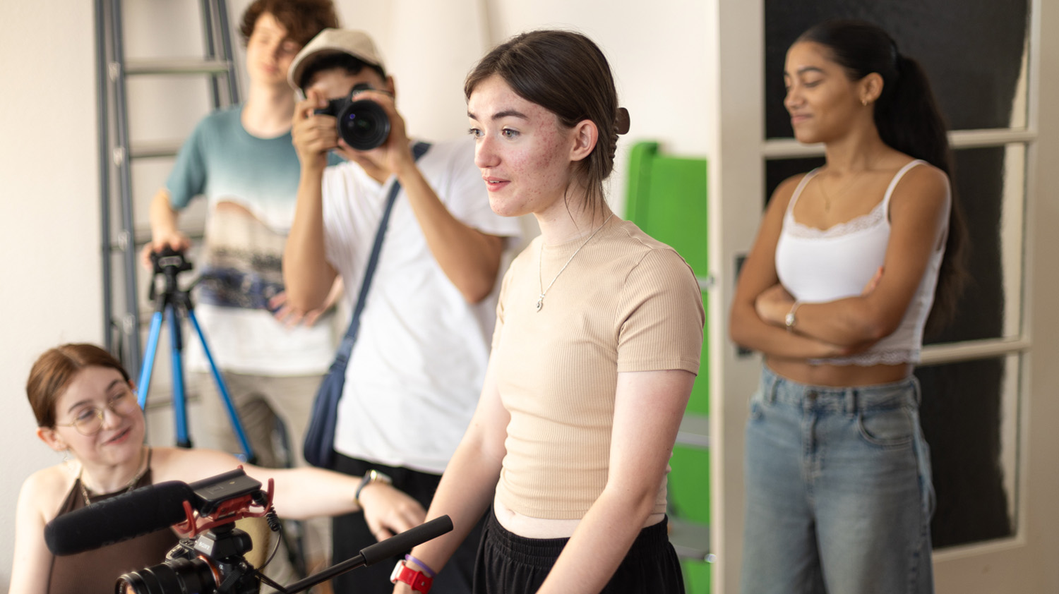 Die Teilnehmenden probieren sich in Rollen sowohl vor- als auch hinter der Kamera aus.