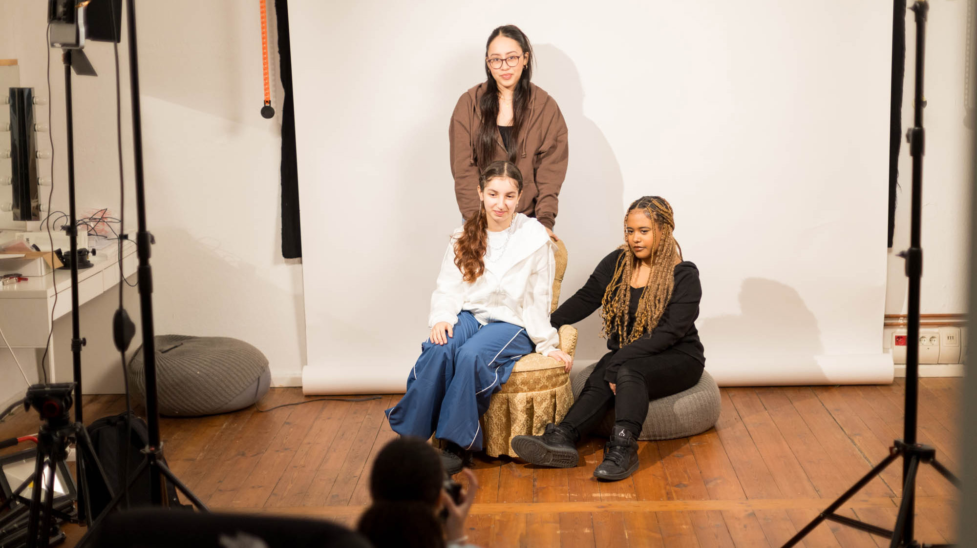 Die Jugendlichen lernen im Austausch voneinander und erarbeiten gemeinsam Videoarbeiten.
