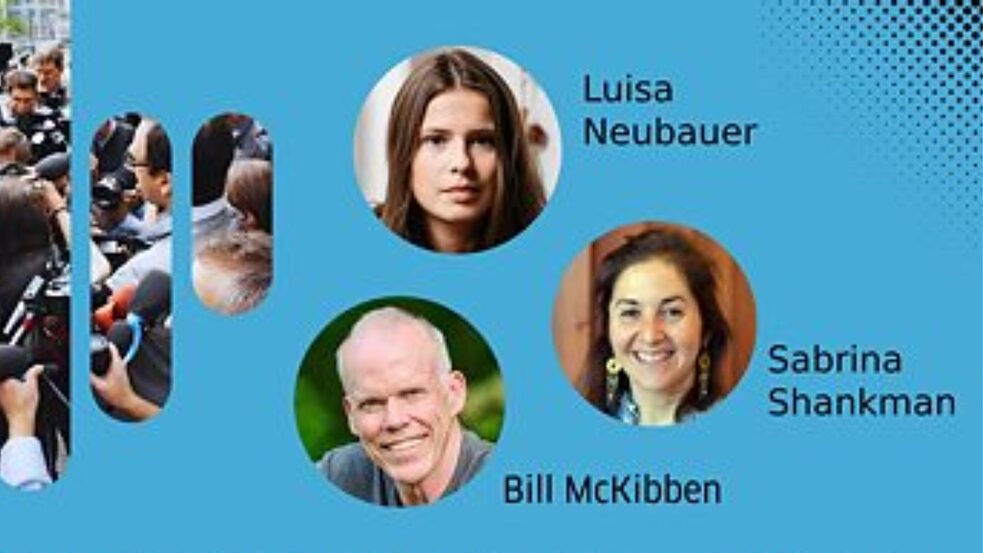 We are talking to Luisa Neubauer, climate activist from Germany and the most prominent representative of the German climate movement and Bill McKibben, environmental activist, educator, founder of Third Act and author of many books. Moderated by Sabrina Shankman, who is reporting on climate change for the Boston Globe.