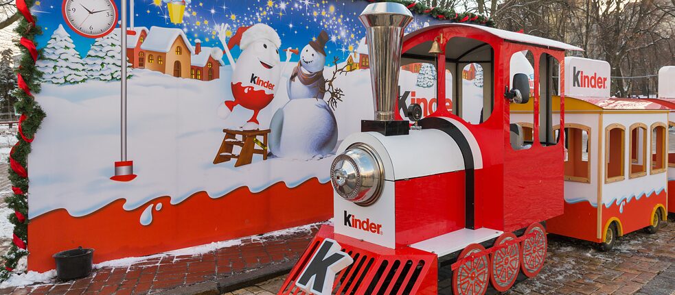 While children all over the world are able to indulge their love for Surprise eggs and they are promoted accordingly (here’s the Kinder Christmas train in Kyiv, Ukraine), there are a few exceptions: they are banned in the USA due to a regulation. This regulation prohibits the sale of confectionery containing toys. And Chile also put Kinder Surprise on the illegal list in 2016 – to protect children and stop them becoming obese. The eggs were encouraging them to buy and eat unhealthy foods excessively, said the authorities.