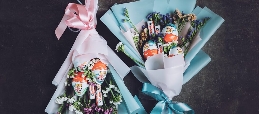 By the way – Surprise eggs are not just suitable as presents for children, and you can find ideas galore for creating your own gifts on the internet. If you think a run-of-the-mill bunch of flowers is a dull gift for a friend, maybe you should opt for a brightly-coloured egg bouquet instead. However we suggest you don’t shake the bouquet before handing it over.