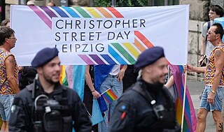 Leipzig, Sommer 2022: Teilnehmende am CSD werden in der Innenstadt von der Polizei begleitet | Foto (Detail): © picture alliance/dpa | Sebastian Willnow