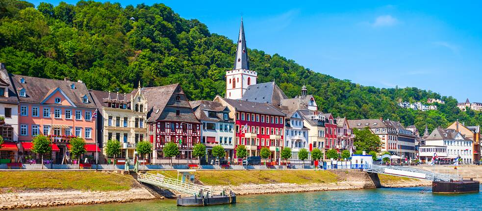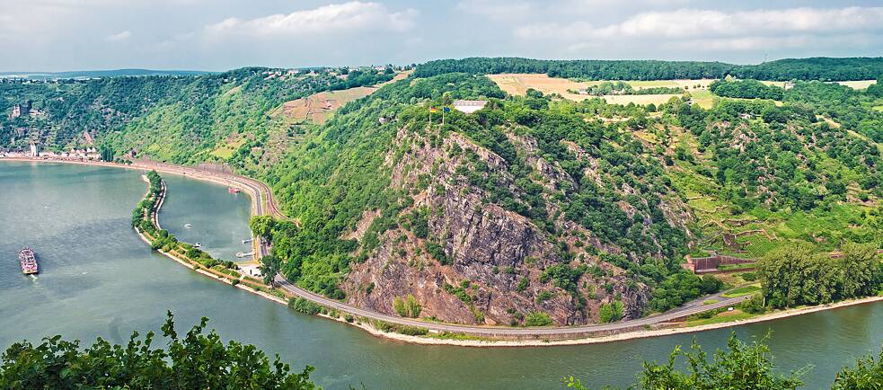 Am Rheinufer bei Sankt Goarshausen schraubt sich die Schieferwand des Loreleyfelsen ganze 132 Meter in den Himmel. Früher galt die Loreleypassage als der gefährlichste Streckenabschnitt im Rhein. Hier ist der Fluss besonders tief und besonders eng. Doch zugleich ist der Ort atemberaubend schön und sagenumwoben. Eine Inspiration für Maler*innen, Dichter*innen und andere Künstler*innen.