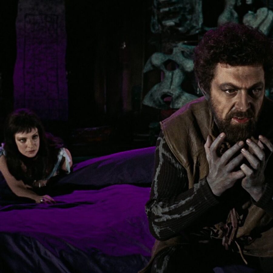 Directed by Michael Powell without his co-Archer Emeric Pressburger, Bluebeard’s Castle is an adaptation of Béla Bartok’s expressionist opera (which itself featured a libretto by the Hungarian film theorist Béla Balázs), produced for West German television. Bass-baritone Norman Foster stars as the titular wife-killer as he takes on a new bride (the Uruguayan mezzo-soprano Ana Raquel Satre). At the time of its 1918 premiere, Bartok’s opera was thought to be nearly unperformable due to the sheer abstraction of its onstage action; Powell and production designer Hein Heckroth use that abstraction as a glorious pretext to craft a vividly colorful, intensely stylized mise en scène, indelibly visualizing the psychodrama of Bartok and Balázs’s take on the Bluebeard folktale.