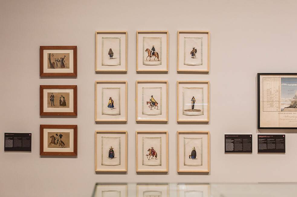 Links: Anonym, Sitten und Gebräuche Perus. | Sunqua, 17 Aquarelle zeigen de Sitten und Gebräuche Perus. Rechts: Alexander von Humboldt & Aimé Bonpland, Ideen zu einer Geographie der Pflanzen nebst einem Naturgemälde der Tropenländer. Die Natur der Dinge: Humboldt, Kommen und Gehen. Humboldt Forum, Berlin, 2019. | Foto: Viktoria Tomaschko