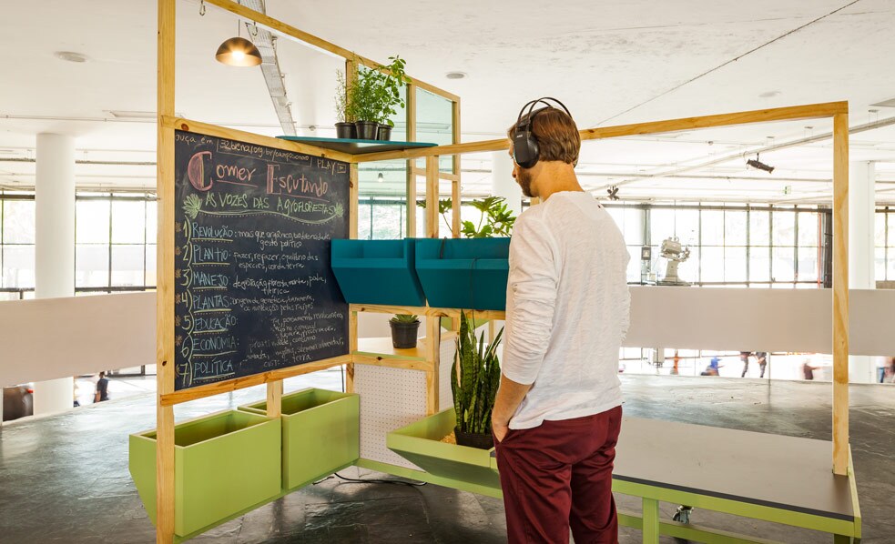 „Ungeachtet dessen, dass viele Regierungen diese Agenda derzeit vernachlässigen, ist die Umweltproblematik das weltweit drängendste Problem der Gegenwart, und den zeitgenössischen Künstlern ist diese Thematik nicht fremd“, sagt Cauê Alves, Kurator des Brasilianischen Museums für Bildhauerei und Ökologie MuBE. Ein Teilbereich dieser Diskussion heute ist der Ernährungsaktivismus, der im Werk des Künstlers Jorge Menna Barreto aus São Paulo zum Ausdruck kommt. Auf der 32. Biennale von São Paulo und in der Serpentine-Galerie in London war von ihm die 2016 erstellte Arbeit Restauro zu sehen. Dieses site specific bietet dem Publikum veganes Essen an und thematisiert so unterschiedliche Fragen rund um die Nahrungsmittelproduktion in der heutigen Welt, wie die Vereinheitlichung des Geschmacks durch die Nahrungsmittelindustrie, Naturzerstörung durch Agrobusiness und auch unsere eigene Rolle in diesem Kreislauf. „Es ist eine Diskussion, die beim eigenen Körper beginnt und schließlich die Umwelt erreicht“, betont Rebouças.Die gleiche Frage bewegt die kostarikanische Künstlerin Lúcia Madriz, deren Arbeiten wie die Installationen Eres lo que comes (You are what you eat, 2009) oder Dinner Party (2018) mit Samen wie Mais, Reis oder Bohnen die gesellschaftlichen und ökologischen Schäden durch die landwirtschaftliche Nutzung von genetisch manipuliertem Saatgut betrachtet.