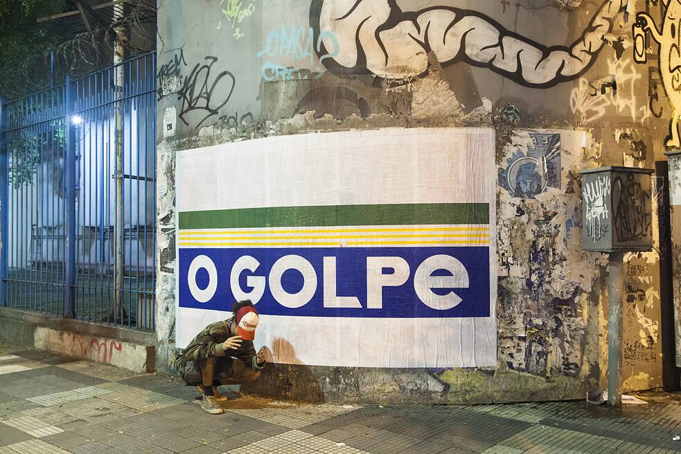 Das Projekt #CóleraAlegria, eine politische Mitmachaktion unter diesem Hashtag, ist eines der interessantesten jüngeren Beispiele, denn es findet Formen, das Netz quer zu den im digitalen Raum vorherrschenden moralisierenden Diskursen zu besetzen. Das Projekt findet hauptsächlich über Bilder im Netz statt und verzweigt sich dort auch über weitere Hashtags, ebenso wichtig ist jedoch die Präsenz im öffentlichen Raum.Eine weitere kollektive künstlerische Aktion, die nur im Dialog mit physischen Räumen gelingt, ist Tubinambá Lambido, deren Arbeiten in Rio de Janeiro wild plakatiert werden. Die sich als ästhetisch-politisch definierenden Aktionen basieren auf dem Gedanken einer medialen Infiltration gut frequentierter Orte der Stadt mit Protestbotschaften und deren Verbreitung durch Bilder unter dem Hashtag #tupinambalambido. Dazu kommt das Hacken großer Kommunikationsmarken, eine Strategie aus den Anfangszeiten der net art, wie etwa ein Plakat mit dem Schriftzug im Stil der Zeitung O Globo, der zu O Golpe [der Putsch] abgewandelt wurde.