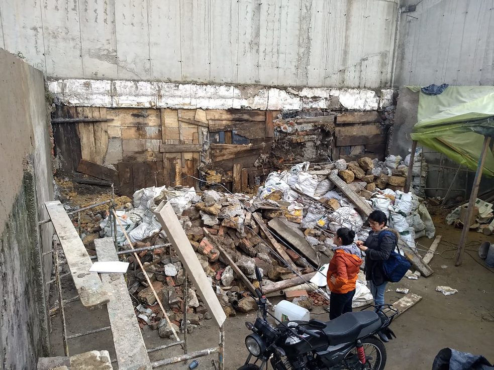 A colombiana Liliana Sánchez apresentou em Berlim a instalação ¿Dónde ahora? ¿Cuándo ahora? ¿Quién ahora? (Onde agora? Quando agora? Quem agora? – 2019). Trata-se de uma ampliação em grande formato de uma fotografia do arquivo pessoal da artista feita em 2019, em Bogotá, sua cidade natal. Na imagem, duas mulheres observam uma paisagem composta por detritos, restos de uma estrutura demolida que não conheceram no original. Ao fundo, está um muro de concreto que se estende verticalmente, sem mostrar sua verdadeira escala.Esse cenário deteriorado e difuso, que dialoga com os dias atuais, é um desdobramento da obra Vorágine (Voragem – 2008), produzida há mais de dez anos por Sánchez e inspirada no livro La Vorágine, clássico da literatura latino-americana escrito pelo colombiano José Eustasio Rivera (1888-1928). No livro lançado em 1924, o autor lança mão de uma trama amorosa para abordar as duras e injustas condições de trabalho dos seringueiros, sobretudo indígenas e negros, na floresta amazônica situada na Colômbia e no Peru. “É um livro que não perde a atualidade, pois trata de questões como a liberdade”, diz Sánchez.
