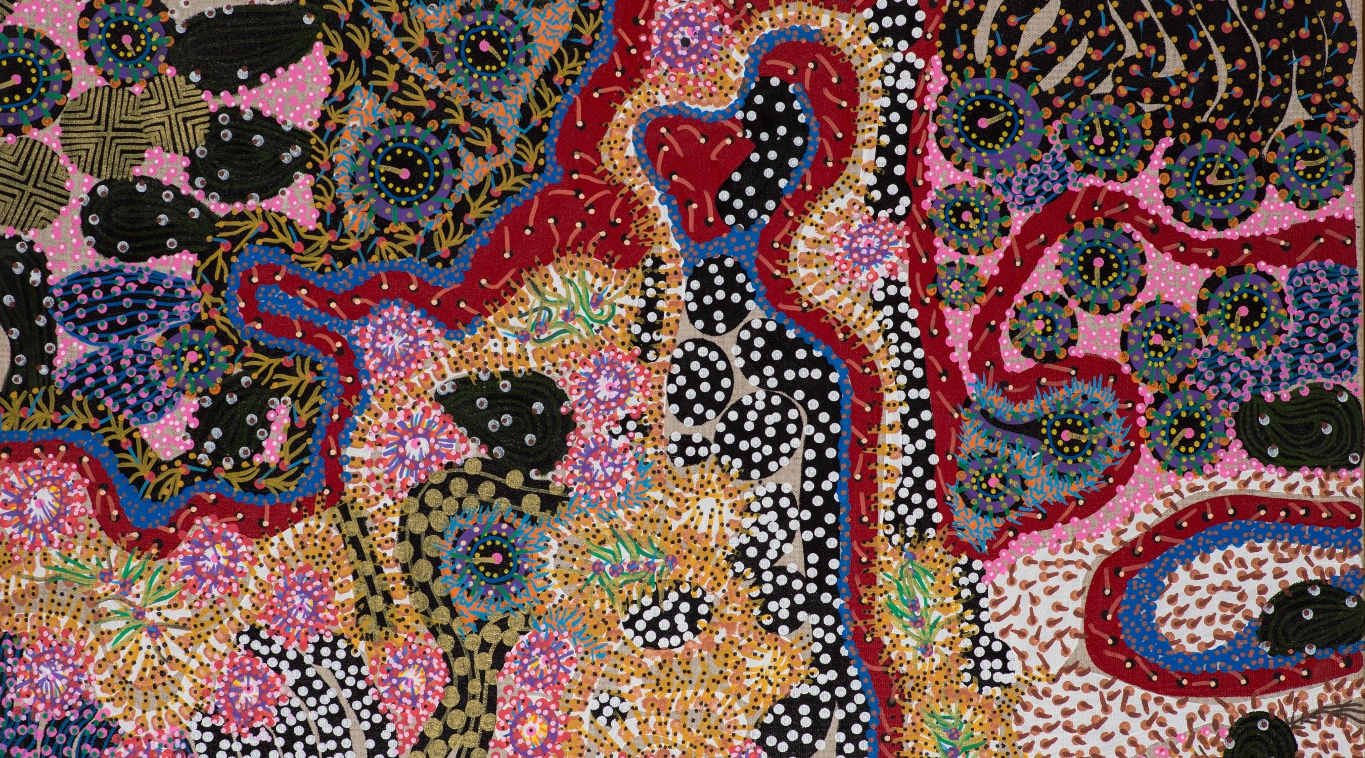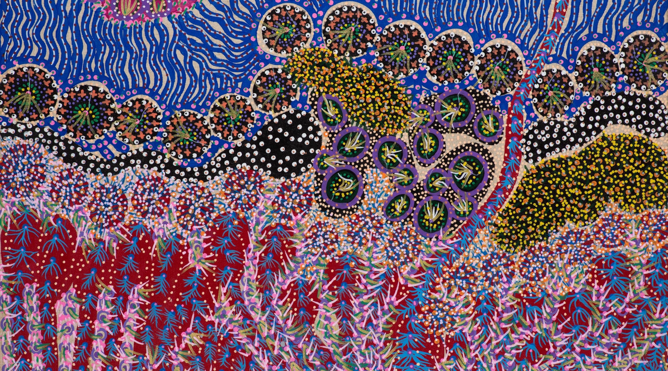“Entranhas do possível”, 2024. Tinta acrílica e marcador permanente sobre linho cru.