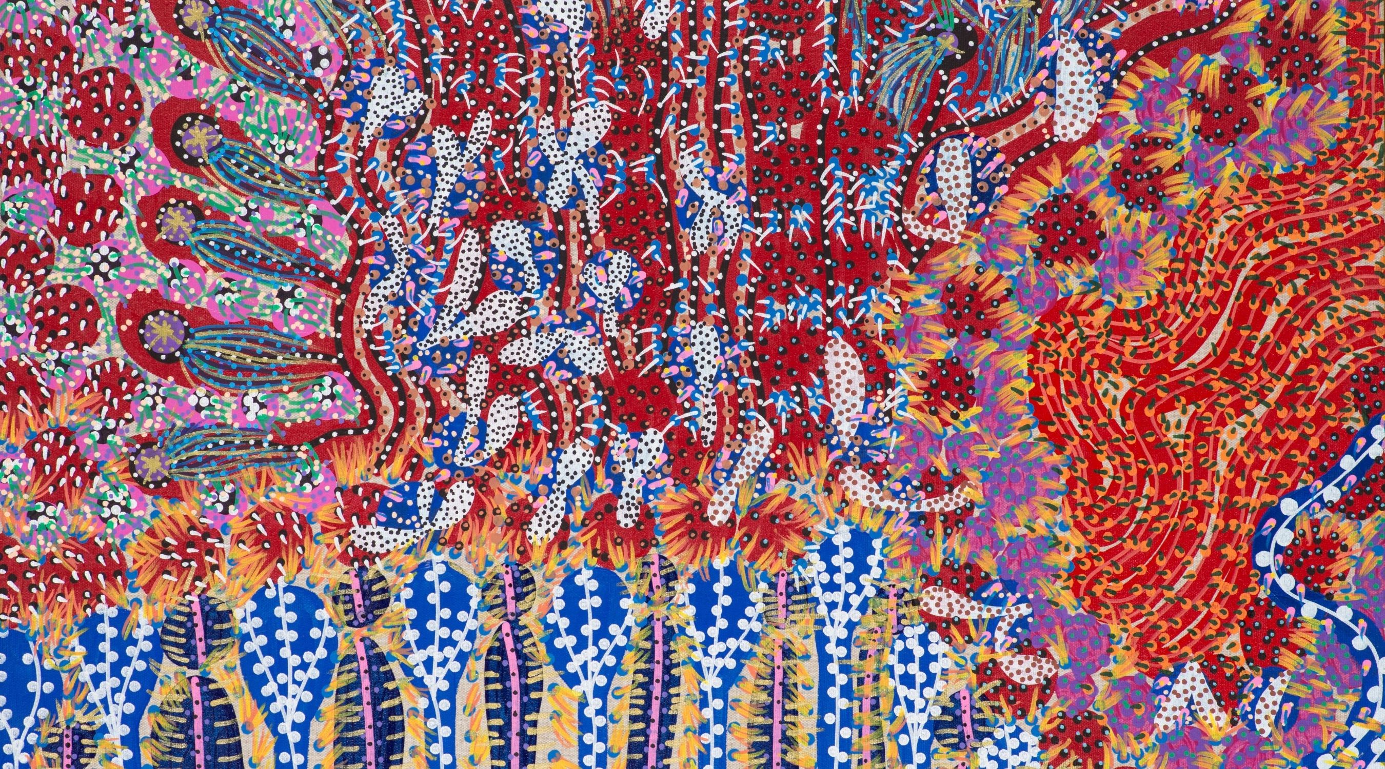 “Sangue de caatingueiro”, 2024. Tinta acrílica e marcador permanente sobre linho cru.