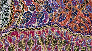 “Encontro da terra seca, água doce e água salgada”, 2024. Tinta acrílica e marcador permanente sobre linho cru.