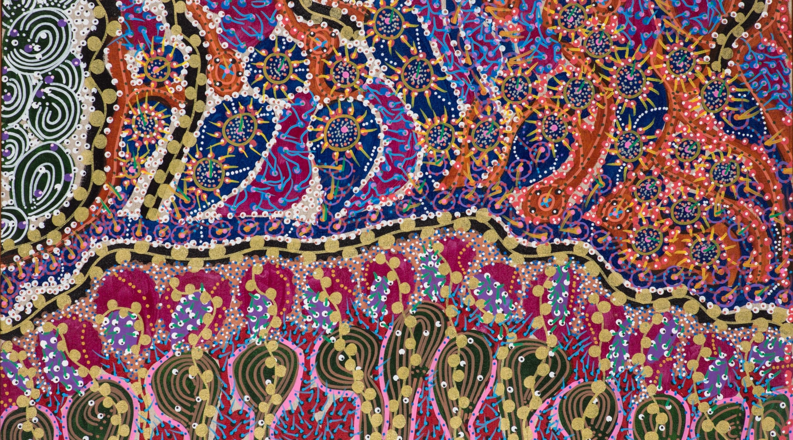 “O Poder do semi- árido”, 2024. Tinta acrílica e marcador permanente sobre linho cru.