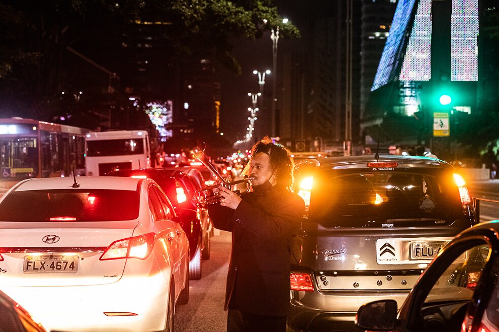 Além disso, cumprimos todos protocolos para não colocar a saúde de ninguém em risco. A performance não foi anunciada nas redes sociais para evitar aglomeração e os performers, que eram nossos amigos ou conhecidos, permaneceram dentro do carro. Mesmo assim acho que conseguimos fazer um trabalho intenso, onde foi tudo muito compartilhado, do processo de criação aos enormes entraves burocráticos. Conseguir fazer a performance na Paulista foi um pesadelo kafkaniano, que exigiu meses de negociação com o poder público.