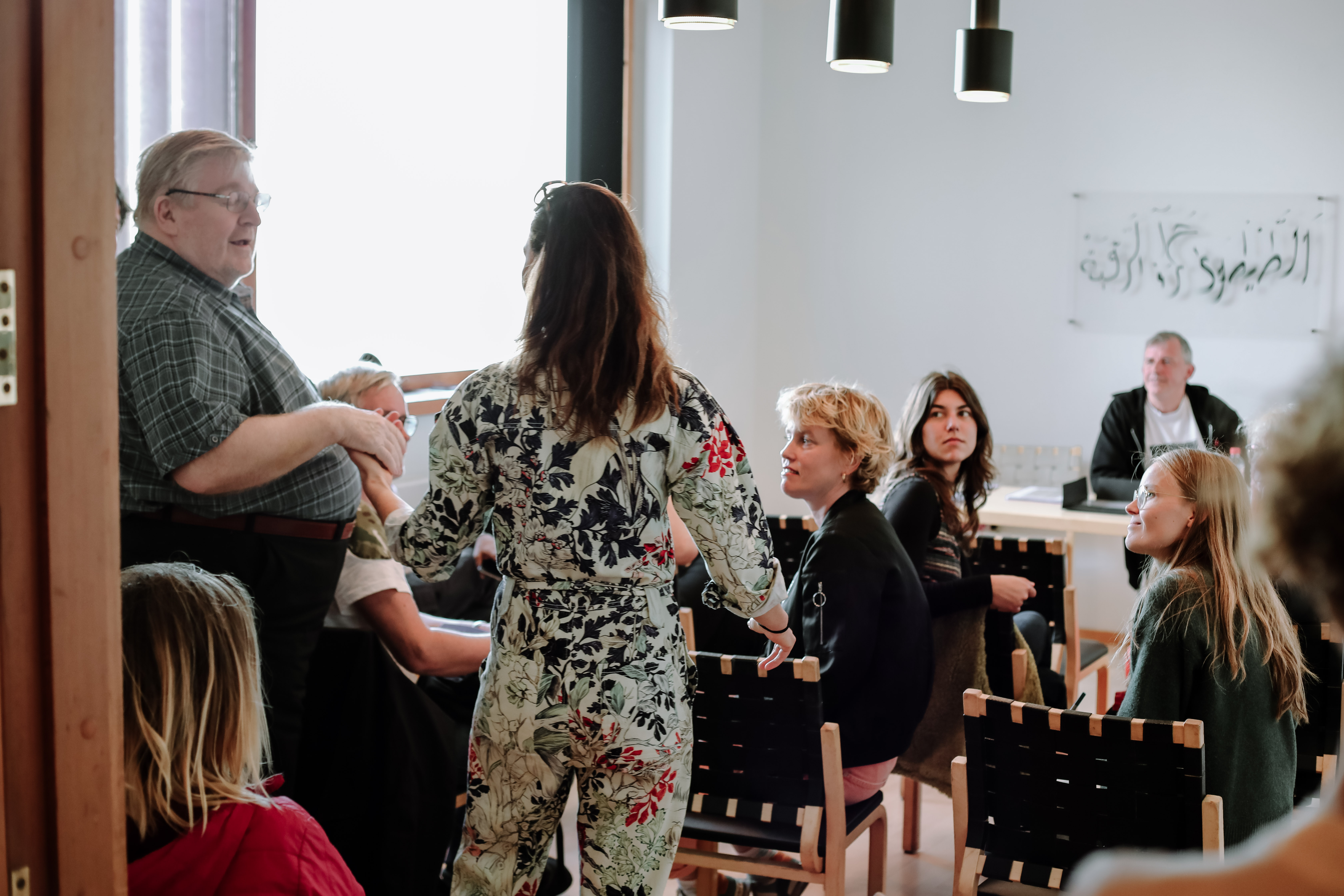 At the Goethe Morph* Iceland event 'The Lost Icelandic Folk Dance', curator Thomas Schaupp and Berglind Ágústsdóttir took it upon themselves to perform the reenactment of a lost dance (picture above) and pretty soon this brought other members of the audience into the discussion. A few more dances were called for and Arnbjörg María Danielsen along with other audiences showed examples of Icelandic folk dances—the lecture becoming a participatory performance. The following day, Ahmad Hamad led the workshop “What nationality do birds have?” as part of the various interventions by Walther von Goethe Foundation at the Nordic House, addressing questions of migration, belonging, and nationalities. Sóley Frostadottir asked Wolfgang Müller on these different interventions, his understanding of performances and the potential of misunderstanding and speculation.
