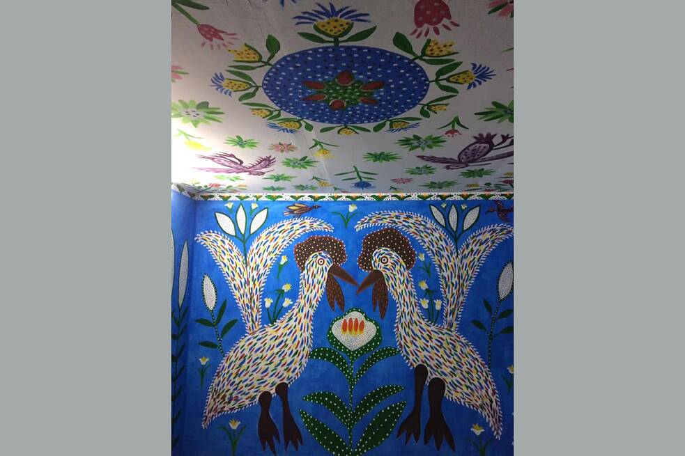 Polina Rajko byla umělkyně samouk, která vytvořila nezvyklý dům – svůj ráj. Narodila se roku 1928 v Oleškách, kde také celý život bydlela, hodně pracovala, měla komplikovaný rodinný život. Štětce se chopila v devětašedesáti letech, kdy na vrata namalovala bílého holuba. Malovala až do své smrti v roce 2004: ozdobila celou usedlost. Po nějaké době její práce upoutaly pozornost kunsthistoriků a obdivovatelů ukrajinského naivního umění.Pokud vás toto téma zajímá, doporučuju vám prohlédnout si díla Marije Prymačenko nebo třeba Kateryny Bilokur. Zničení takového uměleckého artefaktu, jakým byl dům Rajko, je další drobnost, další poznámka na okraji války, která v určitém smyslu (sic!) trvá už stovky let.