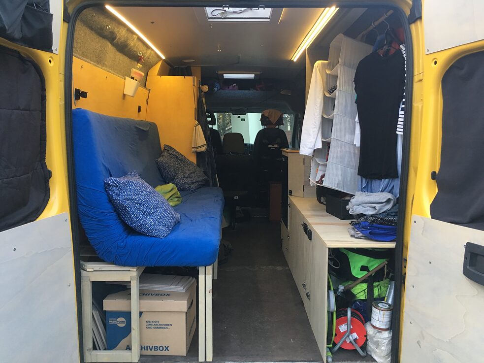 Nechtěla jsem měnit své rozhodnutí opustit byt v Praze, takže mi nezbývalo než od ledna do dubna dodělat auto do obyvatelného stavu. Naštěstí jsem dostala práci na natáčení, kde se cestovalo všude po republice, takže nebyla příležitost litovat, protože se mi Vont (k autu říkám) hrozně hodil a život v něm se mi zalíbil. A bývalý přítel mi časem dokonce dost pomohl s jeho stavbou.