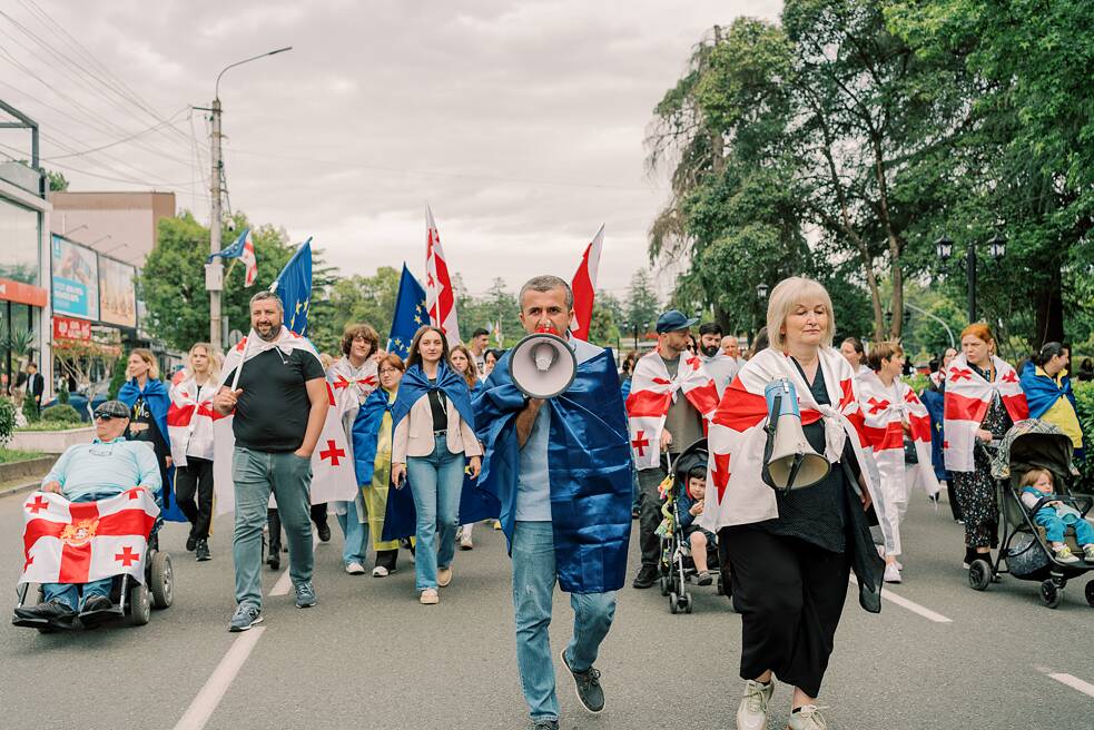 Zugdidi je jedním z měst na západě Gruzie, kde se obyvatelé pravidelně scházejí k protestům. Město leží na hranici s Abcházií, která je více než 30 let okupována Ruskem. Zatímco Gruzínci vnímají Abcházii jako nedílnou část Gruzie, která se nachází ve stavu zamrzlého konfliktu, pro Rusko je to sousední lidová republika a zóna vlivu na Kavkazu. Právě proto mají protesty na hranici mezi oběma regiony zvláštní význam, neboť doslova ukazují střet dvou geopolitických realit: proevropské a proruské.Pravidelné protesty zde organizuje Nadace občanské solidarity, která byla založena před dvěma lety na pomoc ukrajinskému partnerskému městu Pokrovsk v Doněcké oblasti. Od začátku ruské agrese gruzínské Zugdidi přijalo mnoho ukrajinských uprchlíků. Dnes jich tu zůstalo jen několik. Většina se totiž buď vrátila domů nebo odjela do jiných zemí.